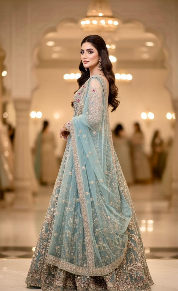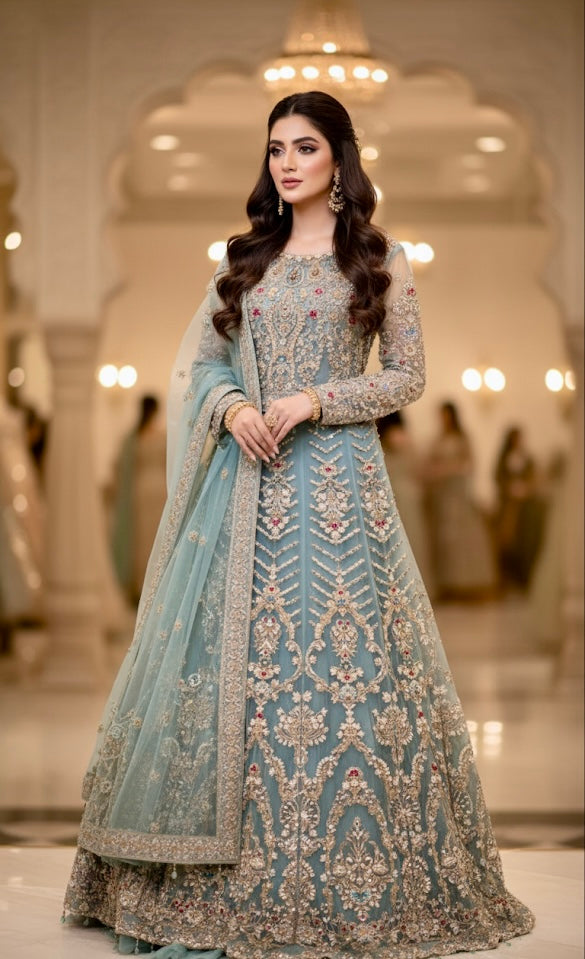 Experience elegance and tradition with the Aqua Rubby MR-267, perfect for weeding wear. This collection features exquisite lehangas and flowing maxis crafted to offer comfort and style throughout your special day. The designs blend vibrant chili tones with refined detailing, ensuring you stand out with grace and confidence. Ideal for those who seek an expert blend of classic charm and contemporary fashion.