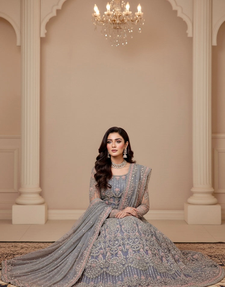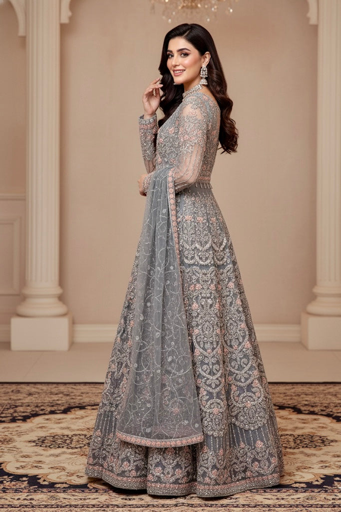 The Pinky Grey MR-290 is a stunning combination of traditional and modern design. Hand-crafted pinky work adorns the lehnga choli and maxi, adding a touch of elegance and sophistication. This versatile outfit is perfect for any occasion and is sure to make you stand out with its intricate details.